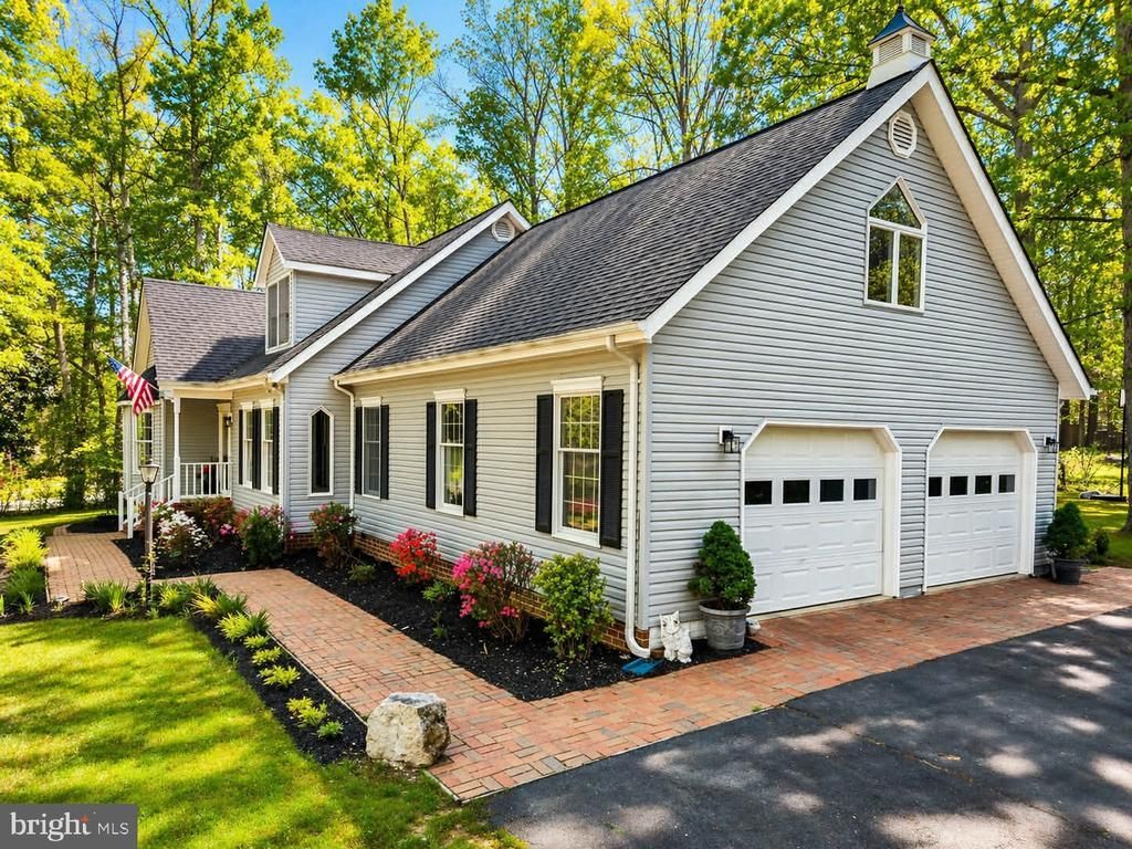 Welcome to this beautiful water view home nestled in a desirable lake community. This 11-room, custom cape cod offers comfort, charm and plenty of space both inside and out. Situated on a large corner lot the property welcomes you with a brick walkway leading from the wide asphalt driveway to both front and back entrances, setting the tone for the thoughtful details found throughout the home. Inside you will find a freshly painted interior complimented by custom hardwood flooring throughout most of main level. The spacious living areas (living room, dining room and family room) are perfect for relaxing or entertaining and feature a family room with wood burning fireplace, recessed lighting, built-in cabinet and easy access to outdoor living spaces. The kitchen has been continually updated and has granite countertops, undermount sink, flat-top stove, double ovens, new refrigerator and microwave, and recessed lighting which creates a functional and stylish cooking space. The main level of the home offers the convenience of one level living by having a primary bedroom suite. Upstairs you will find five rooms, one of which is a large bonus room over the garage and is ideal for recreation space or home office, and a full bath. Outdoor living is just as impressive with a large screened porch featuring two skylights and is connected on the left by a large deck and on the right by a patio and a small pond. The backyard also contains a small sports court next to the stick-built shed, which matches the home. Additional highlights include a huge two-car garage with a mop sink, a large laundry room with cabinets, counter space, built in desk, and a new washer and dryer. There is generous closet and storage space throughout the home and additional attic storage. The home has been well-maintained, including major systems. The roof was replaced in 2014, and dual-zone complete HVAC systems were installed in 2016 (March 2026 inspection report for HVAC systems available). Residents enjoy an exceptional array of neighborhood amenities designed to support an active and engaging lifestyle. Community features include swimming pools, a fully equipped fitness center, basketball courts, tennis and pickleball courts, private boating docks, community beaches, and designated fishing areas. Additional amenities include multiple clubhouses, covered pavilions, a shooting range, archery range, and 24-hour security for added peace of mind. This amenity-rich community offers something for everyone.